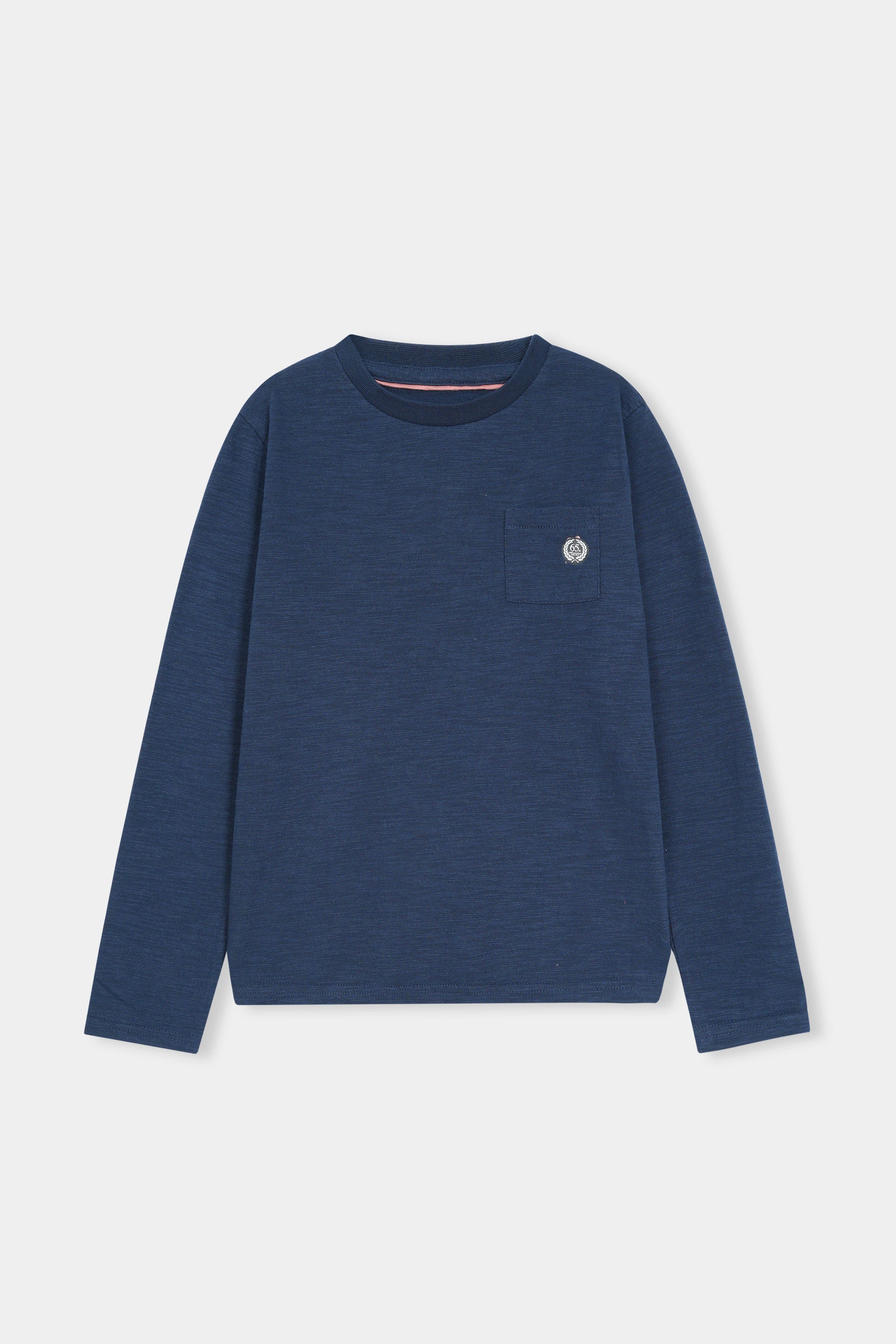 Keep it simple and stylish with this boys’ navy blue long sleeve t-shirt. Made from soft and breathable cotton fabric, it offers all-day comfort for school, play, or casual outings. Featuring a classic crew neckline, chest pocket with embroidered detail, and a relaxed fit, this versatile tee is perfect for layering or wearing on its own. Easy to pair with jeans, shorts, or joggers, it’s a wardrobe essential for every season.