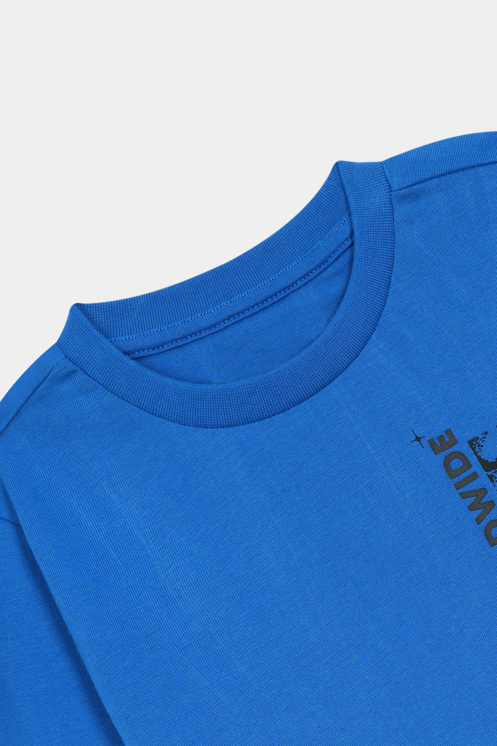 Electric Blue Long Sleeve Tee with “UNLMTD Worldwide” Graphic Print