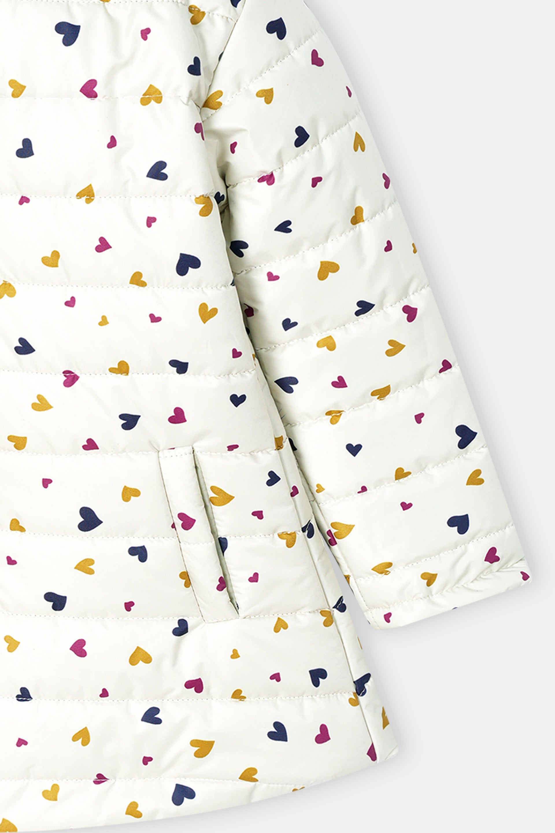 Add a touch of fun and warmth to your little girl’s winter wardrobe with this Girls’ Winter Puffer Jacket. Crafted from soft, high-quality fabric with cozy quilted padding, this jacket ensures both comfort and style during cold days. The white base with adorable multicolor heart prints gives it a cute, cheerful look perfect for school, outdoor play, or family outings.