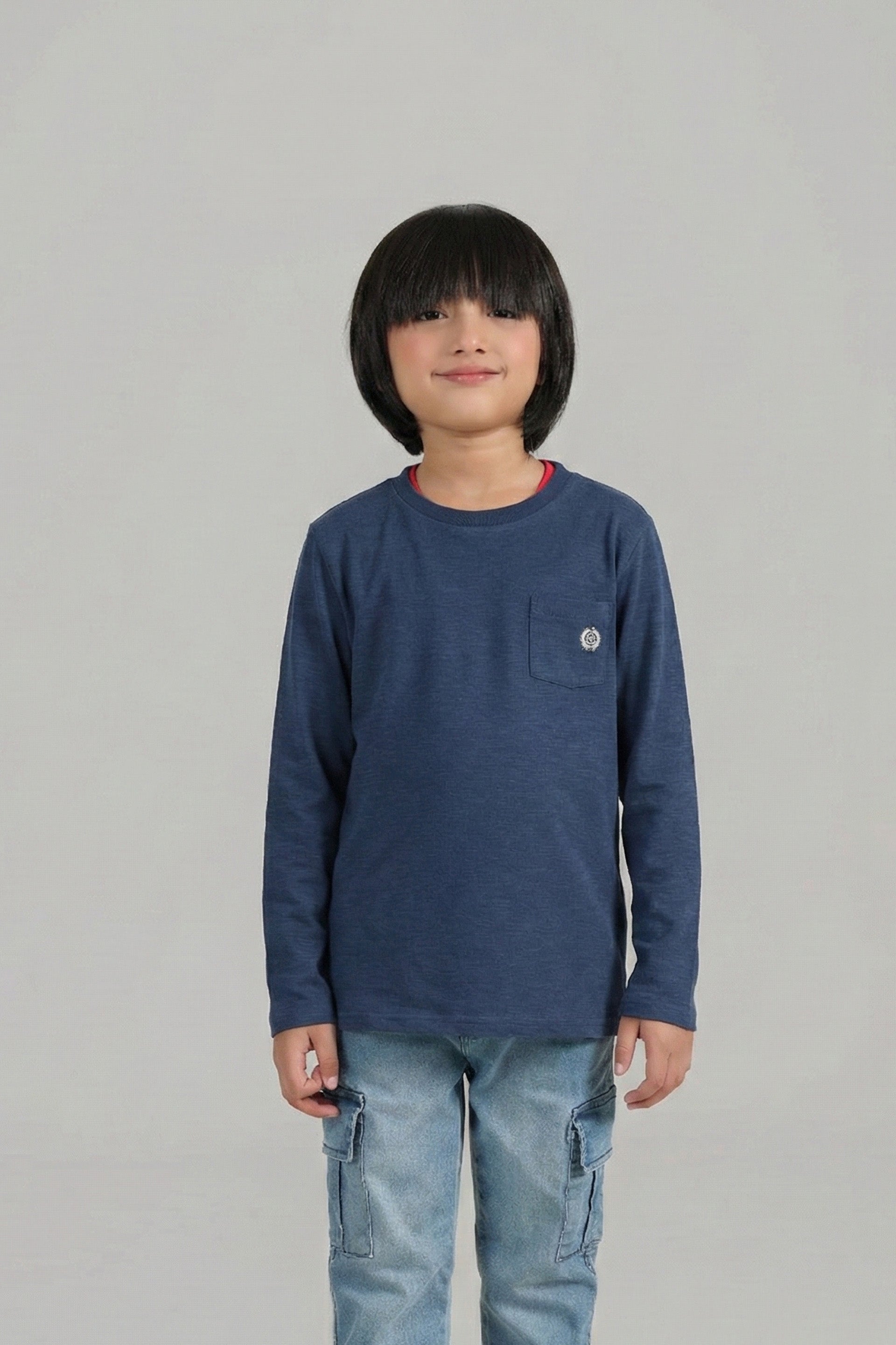 Keep it simple and stylish with this boys’ navy blue long sleeve t-shirt. Made from soft and breathable cotton fabric, it offers all-day comfort for school, play, or casual outings. Featuring a classic crew neckline, chest pocket with embroidered detail, and a relaxed fit, this versatile tee is perfect for layering or wearing on its own. Easy to pair with jeans, shorts, or joggers, it’s a wardrobe essential for every season.